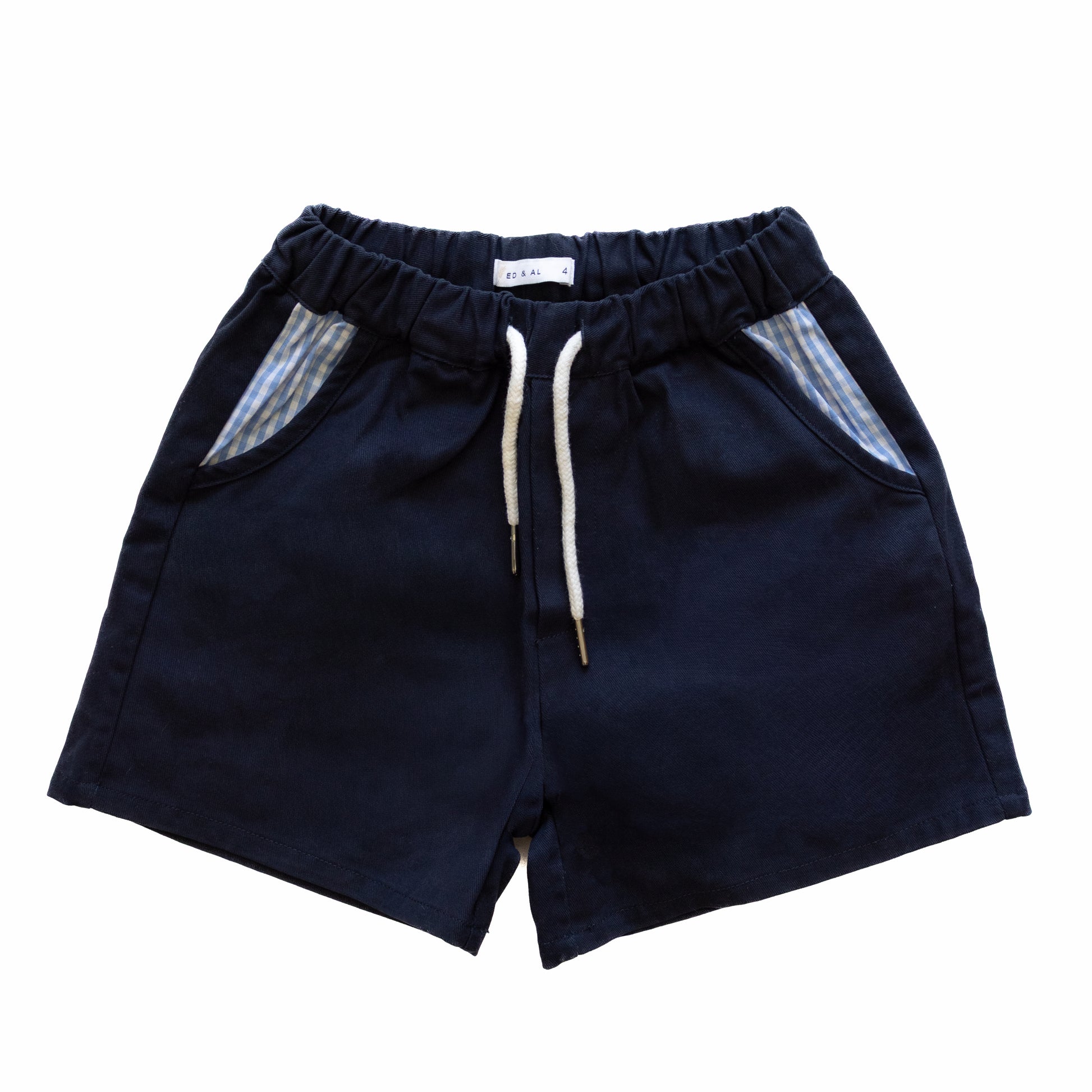 Ready to be worn again and again, these navy shorts are a staple for any wardrobe! Featuring a stylish navy and white gingham lining the pockets, they boast a comfortable elasticated waistband with a drawstring for a relaxed fit. Made from durable twill cotton, these shorts are perfect for any casual outing or summer adventure!